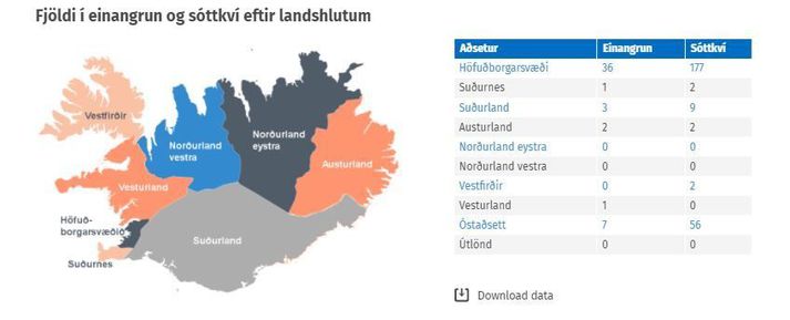 Fjórir greindust innanlands Atli Ísleifsson skrifar 9. júní 2021 10:45 Rúmlega 6.600 manns hafa greinst með kórónuveiruna hér á landi frá upphafi faraldursins. Vísir/Vilhelm Fjórir greindust með kórónuveiruna innanlands í gær. Allir þeir sem greindust voru í sóttkví. Þetta kemur fram í uppfærðum tölum á síðunni Covid.is. Í einangrun eru nú 50, en þeir voru 48 í gær. Í sóttkví eru 248, en voru 247 á föstudag. 1784 eru í skimunarsóttkví. Einn er á sjúkrahúsi vegna Covid-19, sami fjöldi og í gær. Þrír greindust á landamærum í gær, þar sem niðurstöðu mótefnamælingar er beðið í tilvikum allra. Nýgengi á smiti innanlands, þ.e. fjöldi smitaðra á hverja 100 þúsund íbúa undanfarnar tvær vikur, er nú 11,2, en var 11,5 á föstudag. Nýgengi á smiti á landamærum er nú 2,5, en var 2,7 í gær. 105.590 eru nú fullbólusettir hér á landi og er bólusetning hafin hjá 92.565 til viðbótar. Teljast 35,8 prósent einstaklinga sextán ára og eldri nú fullbólusettir og 31,3 prósent hálfbólusettir. 6.616 hafa nú greinst með kórónuveiruna hér á landi frá upphafi faraldursins í febrúar á síðasta ári. Af þeim sem greinst hafa með COVID-19 á Íslandi eru þrjátíu látin. Alls voru tekin 526 einkennasýni hjá sýkla- og veirufræðideild Landspítalans og Íslenskri erfðagreiningu í gær. Þá voru 1524 sýni tekin á landamærunum eða í seinni landamæraskimun og 664 í svokallaðri sóttkvíar- og handahófsskimun. Fréttin hefur verið uppfærð. Faraldur kórónuveiru (COVID-19) Mest lesið Hrindir af stað söfnun fyrir móður stúlkunnar sem lést í Suður-Afríku Innlent Breiddi út faðminn fyrir rasista: „Þið þurfið ekki að biðjast afsökunar á að vera hvít lengur“ Erlent Sprengdu rússneskan hershöfðingja í loft upp í Moskvu Erlent „Þetta hefur verið þungur tími“ Innlent Undirbúningur árásarinnar stóð yfir í marga mánuði Erlent Naut aðstoðar samskiptasérfræðinga vegna veiðigjaldamálsins Innlent Trump skipar sendifulltrúa fyrir Grænland Erlent Málið sem Trump getur ekki losað sig við Erlent Varð vitni að ótrúlegum norðurljósum: „Mér fannst þetta magnað“ Innlent „Ég vil ekki nokkurn tímann sjá neitt svona aftur“ Innlent Fleiri fréttir „Ég hef aldrei upplifað annan eins harm“ Vill leiða lista Sjálfstæðismanna í Reykjanesbæ „Þetta hefur verið þungur tími“ Naut aðstoðar samskiptasérfræðinga vegna veiðigjaldamálsins Hrindir af stað söfnun fyrir móður stúlkunnar sem lést í Suður-Afríku Varð vitni að ótrúlegum norðurljósum: „Mér fannst þetta magnað“ Færir nýársboðið fram á þrettándann Fjórir fluttir á sjúkrahús eftir bílveltu á Suðurlandi Leggur aftur til hverfislögreglustöð í Breiðholti Nú má heita Love, Tóní, Ranimosk og Draumur Kvartar til umboðsmanns og vonar að Vegagerðin sjái að sér Ætlar ekki að beita sér í máli starfsmanns Útlendingastofnunar „Ég vil ekki nokkurn tímann sjá neitt svona aftur“ Gyðingar á Íslandi upplifa aukinn ótta Ferðaþjónusta blómstrar í uppsveitum Árnessýslu „Þetta er bara ljótt“ Hljóti að vera komið að því að skoða öryggisgæslu við skóla Ætlar að skýra hvenær rjúfa megi þagnarskyldu Þagnarskylda heilbrigðisstarfsfólks og öryggisgæsla við grunnskóla Eyjólfur í orlof og Inga þrefaldur ráðherra Vegagerðin segir flóðin í Vík fyrirséð Fjölmiðlar, bókmenntir og hægrimennska á Sprengisandi „En hver sagði að þetta ætti að vera auðvelt?“ Milljónir til almannatengla og átta sinnum meira en í fyrra Grunuð um að koma til landsins til að brjóta á öldruðum Leggja hald á skip á alþjóðahafsvæði undan ströndum Venesúela Bindur vonir við Vor til vinstri Systir og amma drengs í meðferð létust í Suður-Afríku „Við erum pottþétt að koma út í mínus, hversu miklum vitum við ekki“ „Þetta er alveg ásættanlegur samningur“ Sjá meira