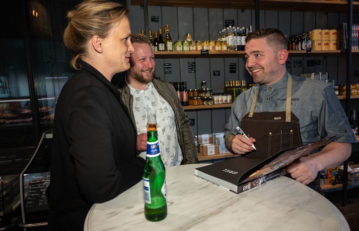 Sælkerarar fögnuðu nýrri matreiðslubók Sylvía Rut Sigfúsdóttir skrifar 23. júní 2021 17:31 Ólöf Eir, Hinrik annar höfundur bókarinnar Grill og Marínó HAG Meistarakokkarnir Viktor Örn Andrésson og Hinrik Örn Lárusson eigendur Sælkerabúðarinnar sendu á dögunum frá sér bókina GRILL og var útgáfu bókarinnar fagnað í vikunni. Boðið var upp á veitingar úr bókinni en hún hefur að geyma fleiri en hundrað uppskriftir og góð ráð um grill- og eldunaraðferðir. Sigrún Rúnarsdóttir, Máni ÞórðarssonHAG „Réttir bókarinnar eru fjölbreyttir og hver öðrum gómsætari. Hráefnið er af ýmsum toga, allt frá nauti til grænmetis, villibráðar til skelfisks og sósum til eftirrétta,“ segir um bókina. Dögg Hjaltalín, annar eiganda Sölku, og Sjöfn Þórðardóttir fjölmiðlakona.HAG „Viðskiptavinir Sælkerabúðarinnar koma úr ólíkum áttum en þeir eiga langsamlega flestir það sameiginlegt að vilja fræðast um hvernig við í Sælkerabúðinni myndum kjósa að elda hráefnið sem hefur orðið fyrir valinu. Við hversu háan hita á að elda, hvernig er best að krydda, hversu langur er eldunartíminn og hve lengi á kjötið að hvíla? Sumarið eftir opnun leið og á nánast sama augnabliki horfðum við hvor á annan og sögðum: „Auðvitað ættum við að skrifa grillbók!“ Það er eitthvað dásamlegt við grillmenningu Íslendinga. Þessi eilífa bjartsýni, hvort sem er í fimbulkulda eða heilum tuttugu gráðum, ef sú gula sýnir sig – þá skal grillað. Við finnum rækilega fyrir því í Sælkerabúðinni enda er sjaldan jafnmikið að gera hjá okkur og þegar sólin skín og grillandinn kemur yfir þjóðina,“ segja þeir Viktor og Hinrik. Helgi Rafnsson, Ernir Snær Helgason, Þórdís SigurjónsdóttirHAG GRILL er yfirgripsmikil og falleg matreiðslubók sem blæs grillurum eldmóði í brjóst og tryggir að allir geti framreitt hina fullkomnu steik. Bókina prýða fallegar ljósmyndir Heiðdísar Guðbjargar Gunnarsdóttur. Salka gefur bókina út. Styrmir Kári, Heiðdís Guðbjörg Gunnarsdóttir, Gunnar HersveinnHAG Í albúminu hér fyrir neðan má sjá fleiri myndir frá viðburðinum. Útgefendur og höfundar sátt með vel heppnaðan viðburð.HAGÞráinn Freyr Vigfússon, Guðmundur GuðmundssonHAGEydís Ósk Jónsdóttir, Marínó Atlas, Dóra Þórsdóttir, Jón Steingrímur KjartannssonHAGMagnús Jónatannssson, Ágústa FimmbogadóttirHAGHAGHAGHAGHAGHAGHAGHAGHAGHAGHAGDögg Hjaltalín, Birgir Örn EinarssonHAGHAGHAGHAGHAGHAGHAGHAGHAGHAGHAGHrönn HilmarsdóttirHAGHAGHAGHAGHrönn HilmarsdóttirHAGHAG Matur Samkvæmislífið Mest lesið Breytti um nafn eftir djúpa ástarsorg Tónlist Sigurjón og Sóley gjörbreyttu eldhúsinu með einstakri útkomu Lífið Fasteignasalar og ofurskvísur í Októberfest stemningu Lífið Eitt glæsilegasta hús Reykjavíkur til sölu Lífið Náðu höndum yfir fæðingarvottorðið og ljóstruðu upp um fæðinguna Bíó og sjónvarp Cecilie tekur við af Auði Menning Nýir réttir Serrano aðgengilegir í LifeTrack appinu Lífið samstarf Sjóðheitt fyrir snjóstorm Tíska og hönnun Troðningur á yfirfullri opnun: „Þetta var svolítið kreisí“ Lífið Bragðgott quesadilla á einni plötu Matur Fleiri fréttir Sviti, mjólk og hóstakast eftir að hafa manað hvorn annan Yfir 170 góðgerðafélög hlutu styrk í áheitasöfnun Reykjavíkurmaraþons Sigurjón og Sóley gjörbreyttu eldhúsinu með einstakri útkomu „Alvöru“ jólasveinn gisti á Hótel Rangá Fasteignasalar og ofurskvísur í Októberfest stemningu Eitt glæsilegasta hús Reykjavíkur til sölu „Þetta er það fallegasta sem einhver hefur sagt um mig“ Hvað þýðir „six-seven“? Smáforrit til að deila heimilisverkum: „Fæ þrjú stig fyrir að þurrka af á heimilinu“ Kynslóðabilið kom í ljós þegar umræðan beindist að blautbolakeppni Ljúffengar banana- og kakóbollakökur í nestisboxið Troðningur á yfirfullri opnun: „Þetta var svolítið kreisí“ Pétur Kr. og Ingibjörg selja 270 fermetra eign við Ægisíðu Barist upp á líf og dauða „Get ekki hætt að hugsa um bragðarefinn sem hann pantaði“ Langþráður draumur verður að veruleika Samsæriskenningar notaðar sem stjórntæki Stjörnulífið: „Dagur sem mun aldrei gleymast“ Gisti hálft ár á sófum hjá bekkjarfélögum Betra að vera blankur nemi í New York Kynlífið innantómt með öðrum en fyrrverandi Fékk lífið til baka á korteri eftir tólf ár af sársauka Staðfesta loks sambandið Einar og Milla skírðu drenginn Með blæðandi hjarta og ber örin með stolti Krakkatían: Kvennafrídagurinn, Ólsen ólsen og málsháttur Áslaug Arna kom alblóðug inn í sjúkratjaldið Upplifði stöðugan ótta við helvíti í samfélagi múslima í Svíþjóð Getur alls ekki verið einn Fréttatía vikunnar: Ungfrú Ísland Teen, Louvre-þjófnaður og hrukkur Sjá meira