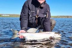 Upptalningin á ánum þar sem hnúðlaxar hafa veiðst er orðin ansi löng og vikulega bætast við ein til ár á þennan lista. Sandá er ein af þeim en þar veiddist þessi hængur sem er á meðfylgjandi mynd. Í sumum ánum er bara nokkuð mikið af þeim til dæmis í Soginu, Fögruhlíðarós, Brunná og Hvannadalsá bara svo nokkrar séu nefndar. Veiðimenn eru vinsamlegast beðnir um að drepa laxana sem veiðast, heilfrysta þá og senda á Hafrannsóknarstofnun. Hnúðlaxinn er um þessar mundir að koma sér í hrygningu og það er þess vegna mikilvægt að fækka eins og kostur er í ánum en önnur úrræði en veiði eru til í boði fyrir okkur. Sem betur fer er hnúðlaxinn ekki orðinn sú plága sem hann er í nokkrum ám í Noregi þar sem það þarf hreinlega að draga á suma hylji til að tæma þá og hnúðlaxi.