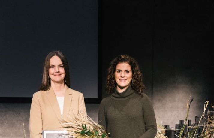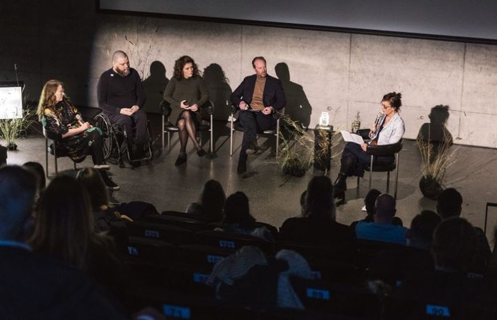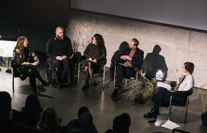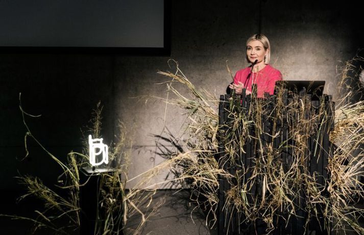 Hönnunarverðlaunum Íslands 2021 fagnað í Grósku Sylvía Rut Sigfúsdóttir skrifar 2. nóvember 2021 14:30 Aldís Pálsdóttir ljósmyndari fangaði stemninguna á Hönnunarverðlaunum Íslands á föstudag. Aldís Páls Hönnunarverðlaun Íslands 2021 fóru fram í Grósku þann á föstudag við hátíðlega athöfn fyrir fullum sal gesta. Kynnir kvöldsins var Guðrún Sóley Gestsdóttir fjölmiðlakona. Aldís Pálsdóttir ljósmyndari myndaði viðburðinn og myndaalbúm má finna neðst í fréttinni. Fyrr um daginn fór fram samtal um framtíð byggða á hönnun, hugviti og nýsköpun undir stjórn Hrundar Gunnsteinsdóttur, framkvæmdastjóri Festu - miðstöð um samfélagsábyrgð og sjálfbærni. Hönnunarverðlaunin beina sjónum að því besta í hönnun hér á landi.Aldís Páls Fyrst fór fram Samtal um framtíð byggða á hönnun, hugviti og nýsköpun sem hófst með snörpum erindum um tilnefningar til verðlaunanna í ár ásamt líflegum pallborðsumræðum þar sem sátu Þórdís Kolbrún R. Gylfadóttir, ferðamála-, iðnaðar- og nýsköpunarráðherra, Haraldur Þorleifsson, stofnandi Ueno, Sigurður Hannesson framkvæmdastjóri Samtaka iðnaðarins og Halla Helgadóttir, framkvæmdastjóri Miðstöðvar hönnunar og arkitektúrs. Líflegar umræður sköpuðust í Hörpu á föstudag.Aldís Páls Í ár voru fimm framúrskarandi verkefni á sviði hönnunar og arkitektúrs tilnefnd: made in reykjavík eftir Magneu Einarsdóttur, Hjaltalín - ∞“ eftir grafíska hönnuðinn Sigurð Oddsson, myndhöggvarann Matthías Rúnar Sigurðsson og þrívíddarhönnuðinn Gabríel Benedikt Bachmann, Söluhús við Ægisgarð eftir Yrki arkitekta, Konur sem kjósa eftir Snæfríði Þorsteins, Hildigunni Gunnarsdóttur og Agnar Frey Stefánsson og hönnunarverkefnið Þykjó eftir hönnuðina Sigríði Sunnu Reynisdóttur, Ninnu Þórarinsdóttur, Sigurbjörgu Stefánsdóttir og Erlu Ólafsdóttur. Metnaðarfullur minnisvarði Eins og kom fram hér á Vísi á föstudag voru handhafar Hönnunarverðlauna Íslands 2021 þeir Sigurður Oddsson, Matthías Rúnar Sigurðsson og Gabríel Benedikt Bachmann fyrir verkefnið Hjaltalín - ∞. Þórdís Kolbrún R. Gylfadóttir, ferðamála-, iðnaðar- og nýsköpunarráðherra afhenti þeim verðlaunin. „Myndræn framsetning er óaðfinnanleg. Samspil ljóss og skugga skapar einstaka kyrrð og hlýju. Stund frosin í tíma. Leturval er vel við hæfi og táknróf plötunnar vísar smekklega í gyllta plötu Voyager geimfarsins sem er flöskuskeyti mannkyns út fyrir okkar sólkerfi. Það er mat dómnefndar Hönnunarverðlauna Íslands árið 2021 að hönnun plötuumslags og heildarútfærsla „∞“ sé einstaklega sterkt heildrænt verk og metnaðarfullur minnisvarði um samspil tónlistar og hönnunar til framtíðar.“ Sigurður, Gabríel og Matthías unnu Hönnunarverðlaun Íslands í ár.Aldís Páls Mikilvægur hluti skapandi greina Viðurkenningu fyrir bestu fjárfestingu í hönnun árið 2021 hlýtur fyrirtækið CCP Games. Það var Sigurður Hannesson, framkvæmdastjóri Samtaka Iðnaðarins sem veitti forsvarsmönnum CCP viðurkenninguna. „Tölvuleikjaiðnaðurinn er í dag mjög mikilvægur hluti skapandi greina og vaxandi hugverkaiðnaðar á Íslandi með tuttugu starfandi fyrirtæki sem sérhæfa sig í tölvuleikjagerð. Starfsemi CCP hefur haft ómetanleg áhrif á fagið í heild og lagði á sínum tíma grunn að nýjum vettvangi hönnunar hér á landi sem flestum þykir nú sjálfsagður.“ Hönnunarverðlaunin fóru fram á föstudag í Grósku.Aldís Páls Endurútgáfa á hönnun Gunnars Lilja D. Alfreðsdóttir, mennta- og menningarmálaráðherra veitti Gunnari Magnússyni, húsgagnahönnuður og innanhússarkitekt Heiðursverðlaun Hönnunarverðlauna Íslands árið 2021. Afkomendur Gunnars tóku á móti verðlaunum fyrir hans hönd, þar sem hann átti ekki heimangengt. „Í gegnum árin hefur Gunnar tekið þátt í fjölda sýninga og unnið til alþjóðlegra verðlauna. Um leið og verk hans endurspegla tíðarandann í norrænni hönnun á seinni hluta síðustu aldar eru höfundareinkenni Gunnars auðþekkjanleg og skapa verkum hans sérstöðu sem glæsilegir fulltrúar blómlegs tímabils í íslenskri húsgagnahönnun.“ Eins og við fjölluðum um hér á Vísi um helgina hafa FÓLK Reykjavík og Gunnar Magnússon undirritað samning um endurútgáfu og einkarétt á útgáfu hönnunar Gunnars og kynningar og markaðssetningar á hönnunarverkum hans og arfleifð næstu árin. FÓLK mun þróa vörur Gunnars til endurútgáfu í samstarfi við Gunnar og fjölskyldu með sjálfbærni og hringrás hráefna að leiðarljósi. Gunnar Magnússon tók við heiðursverðlaununum á heimili sínu.Aldís Páls Við erum öll almannavarnir Undanfarin ár hefur dómnefnd Hönnunarverðlauna Íslands veitt viðurkenningar til fyrirtækja fyrir bestu fjárfestingu í hönnun. Það er þó ekki síður mikilvægt að opinberir aðilar og stofnanir fjárfesti í hönnun innan starfsemi sinnar og í ár þykir dómnefnd verðugt að veita sérstakt hrós fyrir faglega nálgun og fjárfestingu Embættis landlæknis og Almannavarnadeildar Ríkislögreglustjóra við gerð og framkvæmd herferðarinnar „Við erum öll almannavarnir“ og efnisgáttina covid.is. „Á fordæmalausum tímum urðu embættin að bregðast hratt og örugglega við og fengu auglýsingastofuna Hvíta húsið með sér í lið við útfærslu á fræðsluefni, upplýsingaveitu og samhæfðum aðgerðum ætluðum til þess að stemma stigu við uppgangi Covid-19 faraldursins,“ segir um viðurkenninguna. „Fyrir vikið fékk krefjandi og flókið verkefni aðgengilegt og létt yfirbragð; myndskreytingar glæða viðfangsefnin manneskjulegum blæ, viðmótið er auðskilið og leiðbeiningar og annað prentefni fyrir fyrirtæki og aðra starfsemi ávallt uppfært og vandað. Tónninn er hlýr og sveig