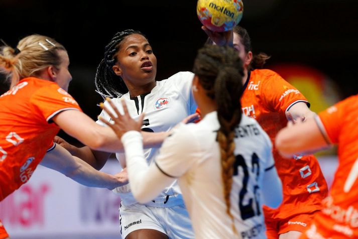 Púertó Ríkó vann uppgjör margrasskelltu liðanna á HM kvenna Óskar Ófeigur Jónsson skrifar 13. desember 2021 16:05 Nathalys Ceballos skoraði þrettán mörk í leiknum í dag. EPA-EFE/Manuel Lorenzo Púertó Ríkó tryggði sér fimmta sætið í milliriðli tvö á heimsmeistaramóti kvenna í handbolta eftir þriggja marka sigur á Kasakstan, 30-27, í lokaleik liðanna á mótinu. Bæði Púertó Ríkó og Kasakstan hafa sett mikinn svip á mótin með því að tapa flestum leikjum sínum mjög stórt. Bæði liðin voru búin að tapa öllum leikjum sínum í milliriðlinum, Kasakstan var með -130 í markatölu úr fjórum leikjum en Púertó Ríkó -137. Púertó Ríkó var kannski með verri markatölu en liðið var sterkari á svellinum í dag í annars jöfnun leik. Púertó Ríkó var 13-11 yfir í hálfleik en Kasakstan komst í 23-21 í seinni hálfleik. Stelpurnar frá Púertó Ríkó tryggðu sér sigurinn með því að vinna lokakaflann 9-4. Nathalys Ceballos átti stórleik en hún skoraði þrettán mörk úr aðeins fjórtán skotum. Hún gaf einnig fimm stoðsendingar og þá var liðsfélagi hennar, Sheila Hiraldo, með tíu stoðsendingar og fimm mörk. Pólland vann á sama tíma sex marka sigur á Svartfjallalandi, 33-27, í milliriðli eitt en hvorugt liðið átti möguleika á að komast áfram í átta liða úrslitin. Pólsku stelpurnar eru komnar með fjögur stig en lið Svartfjallaland fékk ekki eitt stig í milliriðlinum. Angóla tryggði sér jafnframt sæti í úrslitaleik Forsetabikarsins eftir 41 stigs sigur á Úsbekistan, 52-11. HM 2021 í handbolta Mest lesið Sakaður um svindl á HM í pílukasti Sport Hleður Kjartan lofi eftir frábæra frumraun með Aberdeen Fótbolti Óttast að Isak hafi fótbrotnað Enski boltinn Ótrúleg tíðindi á HM í pílukasti: „Mikið sjokk“ Sport Hjalti Þór ráðinn aðalþjálfari Álftaness Körfubolti HM í pílu: Littler flaug áfram og kvöldinu lauk með spennutrylli Sport Körfuboltakvöld: Tilþrif tímabilsins til þessa Körfubolti Túfa gerir þriggja ára samning í Svíþjóð Fótbolti Arnór Ingvi orðinn leikmaður KR Íslenski boltinn Albert skoraði í fyrsta sigri Fiorentina Fótbolti Fleiri fréttir Rúnar sótti sinn fyrsta sigur sem þjálfari Wetzlar Haukur með sjö mörk og Magdeburg rétt marði botnliðið Rúmlega áttræður Moustafa endurkjörinn forseti IHF með yfirburðum Slæm fjárhagsstaða HSÍ kemur ekki niður á EM Donni fagnaði EM vali með skotsýningu Sigvaldi Björn fjarri góðu gamni í sjaldséðu tapi Kolstad Eva Björk með stórleik í fyrsta sigri Stjörnunnar „Hann er ein stærsta ástæðan fyrir því“ KA-menn fengu góða jólagjöf Flautumark hjá FH og ÍR með þeim í Höllina KA í undanúrslit á kostnað bikarmeistaranna Stærsti leikur ársins í Eyjum fer fram í kvöld „Er því miður kominn í jólafrí“ „Þetta var mjög skrítinn leikur“ Haukakonur í fjórða sætið KA/Þór - Valur 23-30 | Ótrúlegur viðsnúningur gestanna Ómar óstöðvandi og Magdeburg í undanúrslit Ómar Ingi fær meiri ábyrgð og tekur við kyndlinum af Aroni Ekkert stríð við Porto og einstakur Þorsteinn nítjándi maður Síðasta verkefni reyndist dýrt fyrir Sigvalda Teitur fer á EM sem hornamaður í stað Sigvalda Snorri kynnti EM-strákana okkar Hleyptu Þorsteini ekki heim og vilja ekki að hann fari á EM Kári og Logi vilja henda Ými út úr landsliðinu Sagður utan hóps fyrir Bjarka og Orra Geggjaðar Eyjakonur á toppinn Þorsteinn Leó að ná sér „langt á undan áætlun“ Birtu tölvupóst þar sem efast er um heilsu forseta IHF Valdi ekki eigin leikmann í landsliðið Halda Orra og Sporting engin bönd Sjá meira