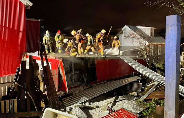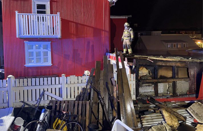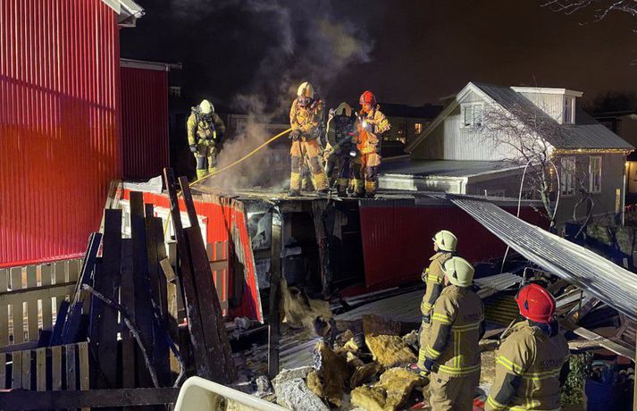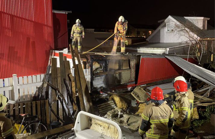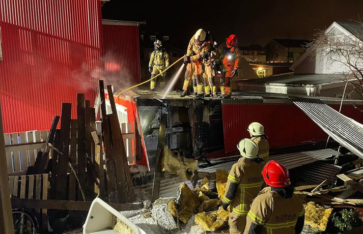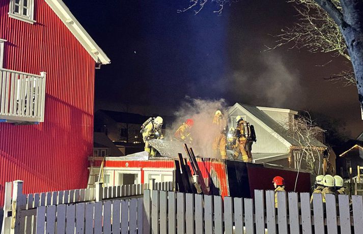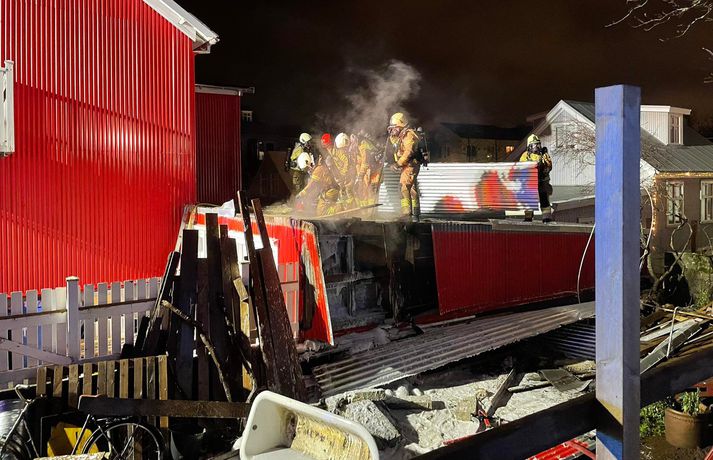 „Þetta hefði getað farið mjög illa ef þetta hefði fengið að krauma lengur“ Viktor Örn Ásgeirsson skrifar 18. desember 2021 13:00 Finnur Hilmarsson, varðstjóri hjá Slökkviliði höfuðborgarsvæðisins, er feginn að ekki hafi farið verr. Vísir/Viktor Eldur kom upp í bakhúsi á Frakkastíg í miðbæ Reykjavíkur rétt fyrir klukkan níu í morgun. Slökkvilið höfuðborgarsvæðisins var að störfum fram eftir morgni en vel gekk að slökkva eldinn. Enginn var inni í húsinu þegar slökkviliðið kom á vettvang. Húsið er klætt með bárujárni en eldurinn kom upp í klæðningu í útvegg hússins. Illa hefði getað farið en slökkviliðið segir í samtali við fréttastofu að eldri hús séu reglulega einangruð með lélegu efni, og eldurinn geti því breiðst fljótt út. Reykskynjarar spili lykilhlutverk og mikilvægt sé að vera meðvituð um flóttaleiðir. Klippa: Slökkviliðið að störfum Eldsupptök eru enn ókunn en slökkviliðið segir ólíklegt að kviknað hafi í út frá kertum. Erfitt sé að festa fingur á eldsupptök enda sé rannsókn skammt á veg komin, en lögregla mun koma til með að fylgjast með húsinu og rannsaka vettvang í dag. Fólk er þó enn sem áður hvatt til að fara með gát, sérstaklega um hátíðirnar. Íbúi í næsta húsi segist hafa vaknað við læti þegar verið var að vekja fólkið sem var inni í bakhúsinu. Hún fann þá brunalykt og áttaði sig fljótt á því hvað væri í gangi. Að sögn íbúans er verið að gera bakhúsið upp en það er í skammtímaleigu á vefsíðunni AirBnb. Slökkviliðið bar blessunarlega fljótt að garði og þeir sem inni voru komust óhult út úr húsinu. Fréttastofa náði tali af Finni Hilmarssyni, varðstjóra hjá slökkviliðinu, á vettvangi í morgun. „Þetta er bara eldur í viðbyggingu á húsi hérna á Frakkastíg 13. Þetta var bara staðbundið hérna í horninu og við erum að klára að rjúfa klæðninguna, bæði á þakinu og á hliðinni hérna, til þess að fullvissa okkur um að við séum komnir fyrir [eldinn]. Það er bara smá glóð enn þá í timbri hérna á bakvið klæðninguna.“ Fór ekki betur en á horfðist? „Þetta hefði getað farið mjög illa ef þetta hefði fengið að krauma lengur,“ segir Finnur Hilmarsson, varðstjóri hjá Slökkviliðinu. Aðrir slökkviliðsmenn tóku í sama streng og þökkuðu fyrir góðar aðstæður á vettvangi. Veður var með besta móti, logn og dálítil rigning, og eldurinn kom upp í vegg sem ekki lá að næsta húsi. Fréttamaður tók myndir á vettvangi í morgun. Reykjavík Slökkvilið Tengdar fréttir Búið að slökkva í eldi í bakhúsi á Frakkastíg Eldur kom upp í viðbyggingu við hús á Frakkastíg 13 í miðbæ Reykjavíkur. Slökkvilið hefur nú lokið störfum og er að fara af vettvangi. 18. desember 2021 08:51 Mest lesið Veðurvaktin: Snjókoman rétt að byrja og víða erfið færð Veður Ungur Miðflokksmaður gengst við rasisma og segir af sér Innlent Snjókoman rétt að byrja Innlent Bílar út af veginum á Reykjanesbraut Innlent Flugmaðurinn sem fórst millilenti oft í Reykjavík Innlent Eldur í blokk við Ljósheima Innlent Ráðgjafinn ráðinn í tímabundið starf eftir dýra skreppitúra Innlent Skvísur geti virkað sem hálfgerðir þroskaþjófar Innlent Fjölmargir farþegar fastir í flugvélum á Keflavíkurflugvelli Innlent Játar að hafa myrt Shinzo Abe Erlent Fleiri fréttir Þarf að borga bætur þrátt fyrir breytingar á hlaupahjólinu Hvatt til varúðar vegna snjóflóðahættu á suðvesturhorninu Meiri kvika en í síðasta gosi Eldur í blokk við Ljósheima Flugmaðurinn sem fórst millilenti oft í Reykjavík Halla leiðir krabbameinsráð ráðherra Snjókomumet og umferðaröngþveiti Segir sameiginlegum gildum Norðurlanda ógnað Fjölmargir farþegar fastir í flugvélum á Keflavíkurflugvelli Ungur Miðflokksmaður gengst við rasisma og segir af sér Sturlað ástand og United vettlingar prjónaðir í bílnum Mesta snjódýpt í Reykjavík sem mælst hefur í október Viðbragðsaðilar í mikilli hættu vegna bíla á sumardekkjum Bílar út af veginum á Reykjanesbraut Vill heimila Samkeppniseftirlitinu að ráðast í húsleitir Snjókoman rétt að byrja Píratar berjist gegn „rísandi bylgju lýðskrums og fasisma“ Skvísur geti virkað sem hálfgerðir þroskaþjófar Ráðgjafinn ráðinn í tímabundið starf eftir dýra skreppitúra Misvægi atkvæða bitnar mest á Kraganum Heitavatnslaust á Suðurnesjum og rafmagnslaust víða um land Skreppiferðir í Jysk meðal þess sem ráðgjafi rukkaði fyrir „Ég tel ekki tilefni til að íhuga stöðu mína“ Áhyggjur af lánaframboði og ógnarlangar biðraðir Vara við ferðum á Fagradalsfjall þar sem aðstæður geti orðið hættulegar Kristmundur verður lögreglustjóri á Austurlandi „Vonandi klárast þetta á morgun“ Sá látni var á rjúpnaveiðum þegar hann varð fyrir voðaskotinu Kvartanir mannsins um ómannúðlega meðferð áður til skoðunar hjá NEL Ungi ökumaðurinn á Ísafirði úr lífshættu Sjá meira