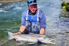Leirvogsá er heldur meira krefjandi en Úlfarsá og þegar hún er aðeins bólgin af rigningarvatni á vorin getur veiðin verið mjög góð enda best að veiða sjóbirting við þessi skilyrði í ánni. Magnús og Björn Hlynur voru við veiðar í Leirvogsá í fyrradag voru þeir búnir að landa hoplaxi og tveimur flottum birtingum, en þeir settu líka í fleiri fiska sem þeir misstu. Veiði hófst í Leirvogsá síðastliðin laugardag þann 1. apríl. Úlfarsá fór af stað á laugardaginn líka, þá veiddust fimmtán hoplaxar og þrír birtingar. SVFR sem er leigutaki beggja ánna biður veiðimenn um að gleyma ekki að skrá aflann í rafrænu veiðibókina inná heiumasíðu SVFR. Öllum vorfiski er sleppt aftur Hér er frásögn frá þeim félögum: "Við félagar vorum við veiðar í Leirvogsá Mánudaginn 3. apríl. Það var mikill vindur og helli demba alveg frá því að við byrjuðum um morguninn . Það var heitt yfir daginn en vindurinn sá um að kæla okkur niður, fengum tvo fiska við stað 198 ( Nýbúi ) og misstum einn vænan líka á sama stað. Eftir klukkan 15 urðu miklar veðurbreytingar og áin for að vaxa og hún var orðin lituð og stóðum við félagar ekki það langt frá veiðistaðnum ármótum í miðju skýfalli. "