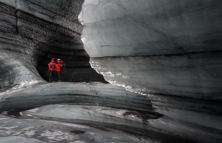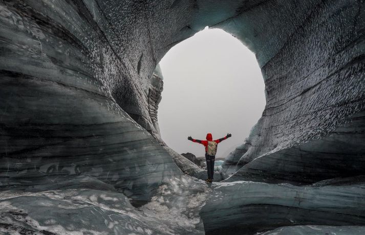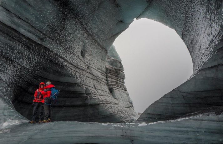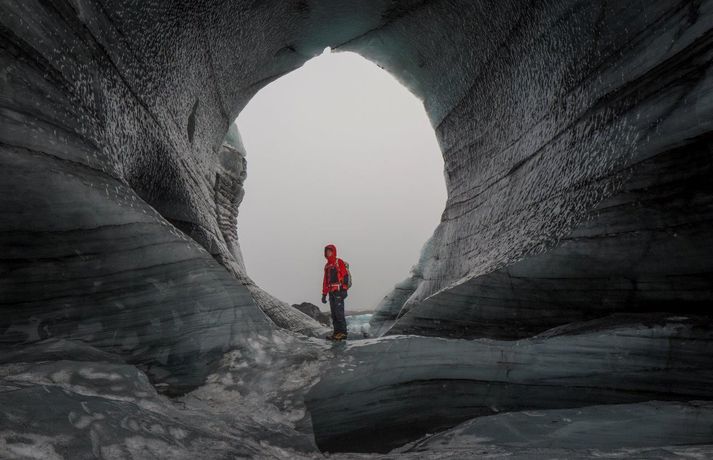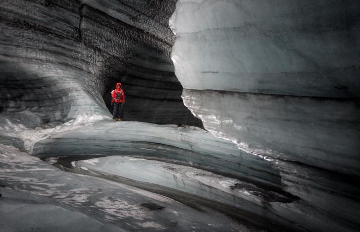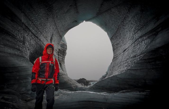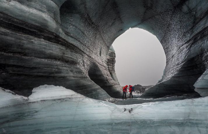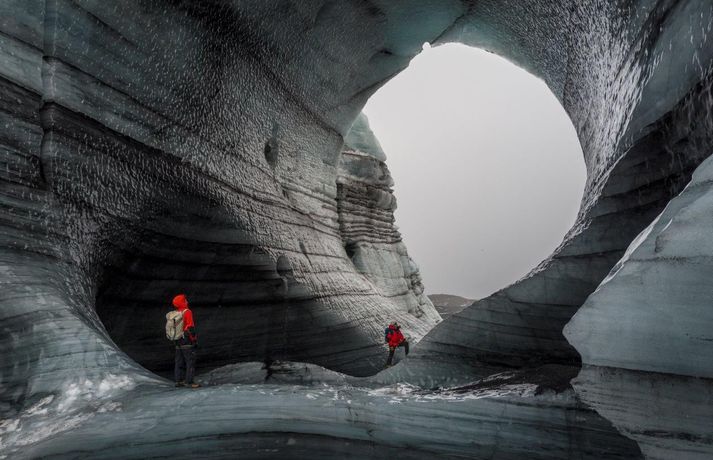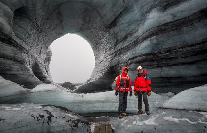 Madison kom hingað til lands til að halda fyrirlestur á vegum Ferðaféalgs Íslands í Háskólabíó á mánudagskvöldið. Óhætt er að segja að Madison hafi frá nægu að segja enda hefur hann þrettán sinnum toppað Mount Everest, hæsta fjall heimsins, auk þess að eiga fleiri afrek á ferilskránni. Stærðin á íshellunum er rosaleg.RAX Madison sem er 44 ára náði mögnuðu afreki í Himalayjafjöllunum í vor. Þá toppaði hann þrjá af hæstu fjallstindunum á þremur vikum í Himalayjafjöllunum. Hann kleif Nuptse (7855 metrar) í maí en aðeins 22 höfðu toppað fjallið á þeim tíma. View this post on Instagram A post shared by Garrett Madison (@garrettmadison1) Hann toppaði Everest (8849 metrar) í þrettánda skiptið rúmum tveimur vikum síðar og svo Lhotse (8516 metrar). Hann naut aðstoðar þriggja sherpa við afrek sitt. Tíu ár voru liðin síðan einhver afrekaði að toppa tindana þrjá á sama göngutímabilinu eins og Guardian fjallaði um. Madison settist niður með Guðna Th. Jóhannessyni á skrifstofu forseta Íslands á mánudaginn og lét vel af því spjalli. Hann nefndi að forsetinn væri útivistarmaður og göngugarpur. View this post on Instagram A post shared by Garrett Madison (@garrettmadison1) Þá skoðaði hann íshellana í Kötlujökli í gær eins og sjá má á myndunum. Madison heldur úti fyrirtækinu Madison Mountaineering sem býður upp á ferðir á hæstu tinda heimsins, bæði í Asíu en einnig í Suður-Ameríku og Suðurskautslandinu. Hann hefur leitt yfir áttatíu fjallagarpa á tind Everest frá 2009. Tómas Guðbjartsson var einmitt með Madison í för þegar hann toppaði hæsta fjall Suður-Ameríku í febrúar. Tómas stóð að heimsókn Madison hingað til lands. Að neðan má sjá myndir sem RAX tók í íshellunum við Kötlujökul í gær. Garrett Madison.Garrett Madison og Tómas Guðbjartsson virka dvergvaxnir í stóru íshellunum í Kötlujökli.vísir/RAXRAXStærðin á íshellunum er rosaleg.RAX