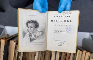 Eftiríking af Fanganum í Kákasus eftur Akexander Púshkin sem skipt var út fyrir dýrmætt upprunalegt eintak háskólabókasafnsins í Varsjá. Getty