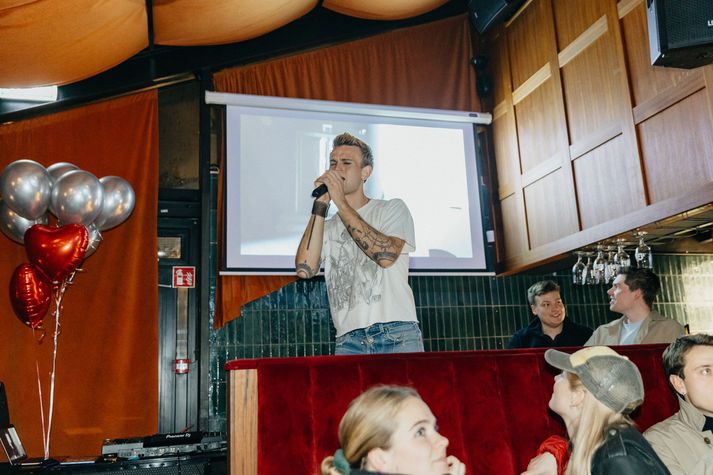 Álfgrímur er 28 ára tónlistarmaður og flugþjónn hjá Icelandair. Hann útskrifaðist í vor úr Listaháskóla Íslands sem sviðshöfundur og hafði samhliða náminu gefið út tónlist. Nýjasta lag hans, „Hjartað slær eitt“, má lýsa sem hvatningarsöng um sjálfseflingu í gegnum ástarsorg, þar sem margir geta speglað sig í þeirri reynslu að hella sér af fullum krafti í líkamsrækt eftir sambandsslit. Eins og segir í textanum: „Þó svo að leiðin sé breytt mun hjartað samt læra að slá eitt.“ Hér að neðan sjá myndir úr frumsýningarpartýinu. Katrín Oddsdóttir og Þorgerður Ása í góðum félagsskap.Ljósmynd/Aníta Eldjárn Álfgrímur og Telma leikstjóri myndbandsins.Ljósmynd/Aníta Eldjárn Flottur hópur.Ljósmynd/Aníta Eldjárn Skál í boðinu!Ljósmynd/Aníta Eldjárn Ljósmynd/Aníta Eldjárn Ljósmynd/Aníta Eldjárn Ljósmynd/Aníta Eldjárn Ljósmynd/Aníta Eldjárn Standandi lófaklapp í lok sýningarinnar!Ljósmynd/Aníta Eldjárn Brosað út að eyrum.Ljósmynd/Aníta Eldjárn Pósað fyrir myndavélina!Ljósmynd/Aníta Eldjárn Ljósmynd/Aníta Eldjárn Helena Reynis listakona ásamt vinkonum.Ljósmynd/Aníta Eldjárn Álfgrímur tók lagið fyrir gesti.Ljósmynd/Aníta Eldjárn Ljósmynd/Aníta Eldjárn Ljósmynd/Aníta Eldjárn Ljósmynd/Aníta Eldjárn