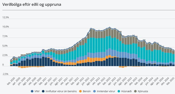 Af þessu myndriti ætti að vera auðvelt að átta sig á af hverju verðbólgan stafaði þessi árin.