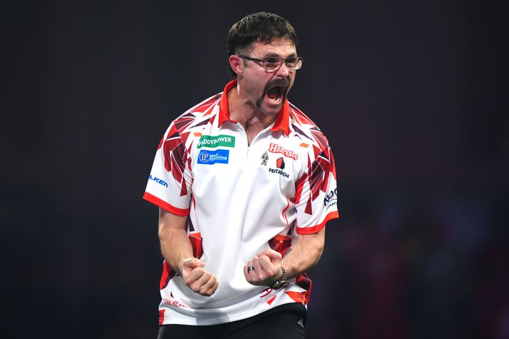 Littler mætti hinum velska David Davies í Alexandra Palace í kvöld og endurtók leikinn frá því í fyrstu umferð mótsins með því að vinna öll settin á móti andstæðingi sínum í kvöld. Davies veitti Littler fína samkeppni í fyrsta setti þeirra en tilfinningin var sú að heimsmeistarinn væri einhvern veginn að malla í hægagangi. Hann þurfti ekki að hafa mikið fyrir hlutunum og flýgur áfram í næstu umferð og mætir þar Austurríkismanninum Mensur Suljovic sem var fyrr í dag sakaður um svindl af mótherja sínum Joe Cullen, samlanda Littler. Síðasta viðureign kvöldsins á HM var spennandi í meira lagi en þar mættust Ástralinn Damon Heta og Svisslendingurinn Stefan Bellmont í sannkölluðum spennutrylli. Bellmont tók fyrsta settið 3-1 en Damon Heta svaraði með því að vinna annað settið á sama hátt og Bellmont tók það fyrsta. Bellmont svaraði með því að taka þriðja settið 3-1 en aftur svaraði Heta með 3-1 sigri í fjórða setti og stóðu því leikar jafnir 2-2 í settum og því allt undir í fimmta setti. Þar reyndist Damon Heta sterkari, hann kastaði fyrir 140 þrisvar sinnum í röð og bjó til nægilegt bil milli sín og Bellmont til þess að klára einvígið og tryggja sér sæti í næstu umferð. Damon Heta kom, sá og sigraði í spennutrylli kvöldsins á HM í pílukastiVísir/Getty Önnur úrslit dagsins, þar á meðal óvænt úrslit sem sáu til þess að Gerwyn Price var sópað út úr mótinu, má lesa um í meðfylgjandi frétt: