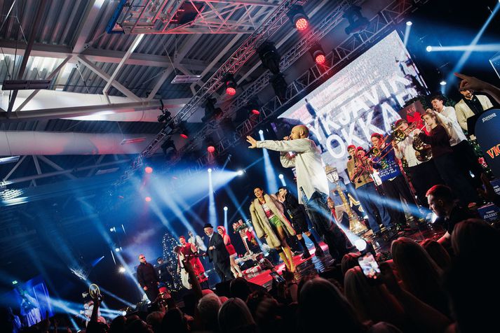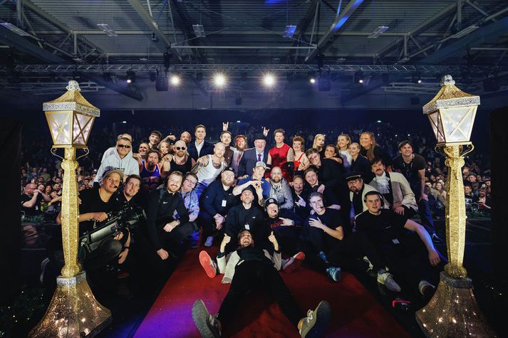 Emmsjé Gauti umbreyttti ÍR-heimilinu annað árið í röð til að halda jólatónleikana Jülevenner fyrir fullu húsi. Rapparinn steig þar á stokk ásamt fjölmörgum góðum gestum, þar á meðal rapparanum Birni, Bríett, Röggu Gísla og þó nokkrum öðrum leynigestum. Margt var um manninn, veigarnar flæddu og hasarinn linnulaus. Gauti dró þá meðal annars fram bæði Finna og Geoff á Prikinu og bauð gestum svo upp á blóðuga fjölbragðaglímu milli jólasveinsins og Jesú Krists. Af myndum og stemmingunni að dæma skemmtu sér flestir en það á þó ekki við um Jónas Sen, gagnrýnanda Vísis, sem gaf tónleikum Gauta á föstudag eina stjörnu í dómi sínum í morgun og lýsti þeim sem helvíti á jörðu. Viðburðurinn hefði sannað endanlega að kapítalisminn gæti selt fólki hvað sem er, svo lengi sem það væri pakkað inn í nógu mikið glimmer og kaldhæðni. „Ef markmiðið var því að sjúga hverja einustu örðu af sál, heilagleika og menningu úr jólahátíðinni, þá tókst Gauta það ekki bara; hann fullkomnaði verkið,“ skrifaði Jónas um tónleikana. Gauti, sem bæði kann á leikinn og hefur húmor sjálfum sér, tók gagnrýninni fagnandi í samtali við mbl.is fyrr í dag. „Ég hef ekki verið jafn glaður yfir neinum dóm ever, án gríns,“ sagði hann þar. Gauti hefur húmor fyrir dómnum. „Það er eins og ég hafi skrifað þessa grein, mér finnst þessi dómur amazing. Ég opnaði hann og ég var bara stoltur af honum, ég er ekki einu sinni að grínast,“ sagði hann í sama viðtali og hefur meira að segja nýtt dóminn til að auglýsa tónleikana á næsta ári. Þannig stendur á forsöluplakatinu fyrir tónleikana skrifað stórum stöfum: „Helvíti á jörðu.“ Ljósmyndarinn Róbert Arnar mætti á tónleikana á laugardaginn og fangaði þar stemminguna sem virkaði ansi góð. Gauti góður.Róbert Arnar Bríet alltaf öflug.Róbert Arnar Jóna Margrét naut sín fremst.Róbert Arnar Bríet brilleraði.Róbert Arnar Króli tók lagið með Gauta.Róbert Arnar Ljósadýrð og gleði.Róbert Arnar Stemmingin var góð.Róbert Arnar Villi Neto ferskur á kantinum.Róbert Arnar Glæsilegt par.Róbert Arnar Þessi gamli góði skemmti fólkinu.Róbert Arnar Fjórar skvísulegar pæjur.Róbert Arnar Guðjón Smári á FM alltaf kátur.Róbert Arnar Birnir og Steindi með aldursforsetanum.Róbert Arnar Finni á Prikinu.Róbert Arnar Gauti og Erpur rifu í mækinn.Róbert Arnar Jóli tók Jesú í snúning.Róbert Arnar Jólasveinninn misþyrmdi Jesú Kristi.Róbert Arnar Gauti með glímuköppunum. Geggjaðar gellur.Róbert Arnar Steindi og góð vinkona.Róbert Arnar Allt gengið sem kom að tónleikunum.Róbert Arnar