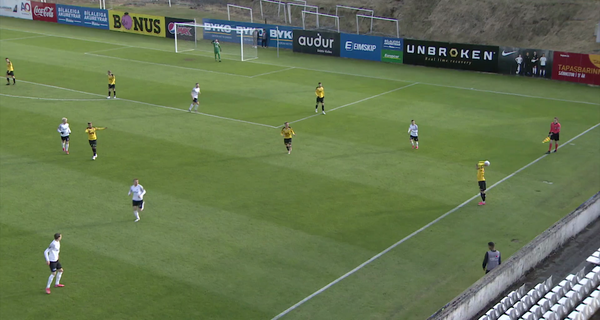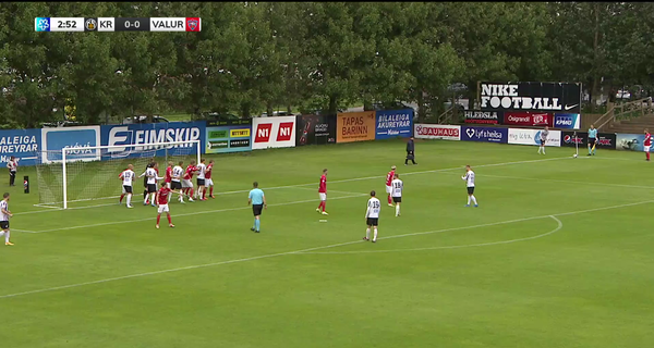 Þorri Mar Þórisson var neyddur til að setja á sig legghlífar áður en hann kom inn á fyrir Stjörnuna gegn Val í Bestu deildinni en var svo fljótur að losa sig við þær eftir að leikur hófst að nýju.