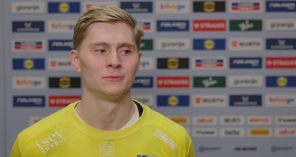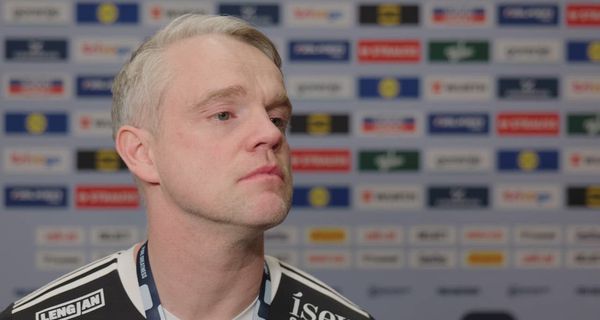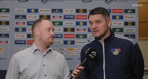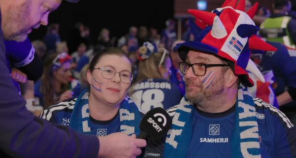 Vel lá á Viktori Gísla Hallgrímssyni eftir eins marks sigur Íslands á Ungverjalandi, 23-24, í F-riðli á Evrópumótinu í handbolta í dag. Viktor átti stórleik og varði 23 skot.