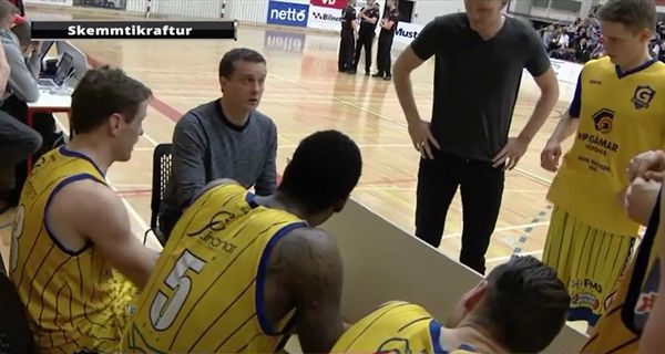 Valsmenn urðu fyrir áfalli í fyrsta leikhluta í leik sínum gegn Grindavík í undanúrslitum Bónus deildarinnar í körfubolta sem nú stendur yfir. Frank Aron Booker, leikmaður liðsins meiddist á hné og fór sárþjáður af velli.
