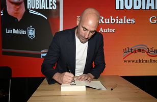 Frændinn mætti með egg og gerði allt vitlaust Kynning á nýrri bók Luis Rubiales fór algjörlega úr böndunum í gærkvöldi en Rubiales er fyrrum formaður spænska knattspyrnusambandsins sem hrökklaðist úr starfi eftir að hafa kysst leikmenn spænska landsliðsins í verðlaunaathöfn þegar liðið varð heimsmeistari. 14.11.2025 09:32
