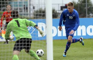 Íslenska landsliðið er enn efst á lista Arons Framherjinn Aron Jóhannsson vakti á dögunum mikla athygli þegar hann skoraði sex mörk í aðeins tveimur leikjum með AGF í dönsku úrvalsdeildinni. Í fyrri leiknum skoraði hann þrennu á tæpum fjórum mínútum sem er met. Afrek hans vöktu víða athygli, ekki síst í Bandaríkjunum þar sem Aron er fæddur. Fótbolti 12.9.2012 20:08